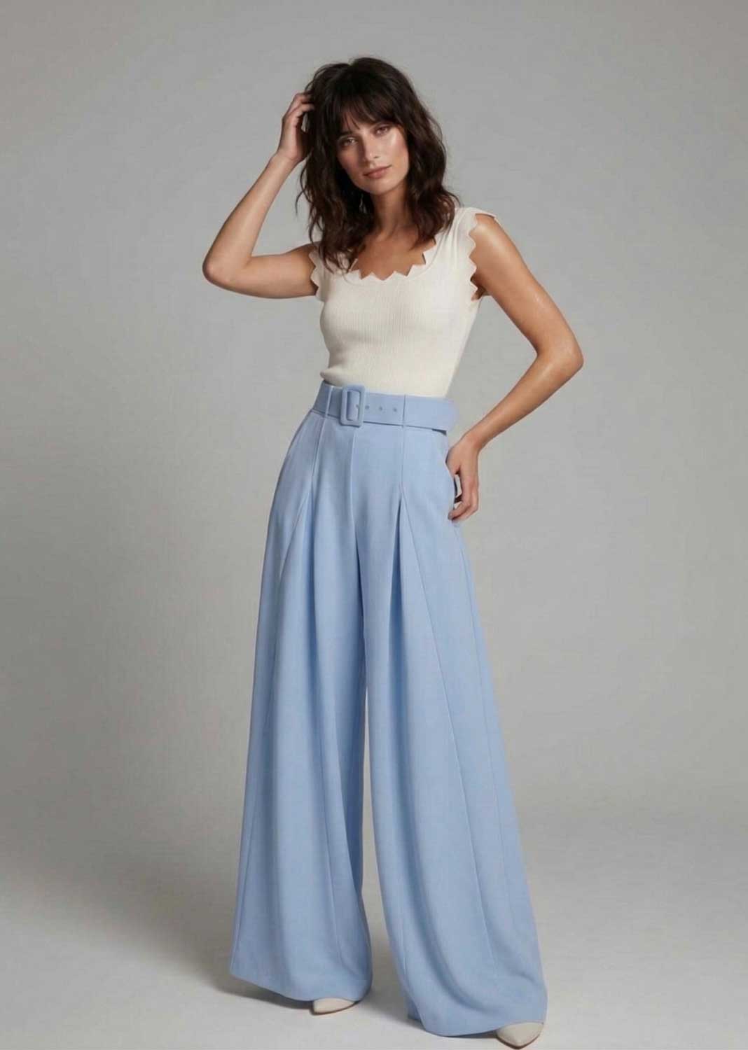 Aurelia Wide Leg Palazzo Pants Pale Blue