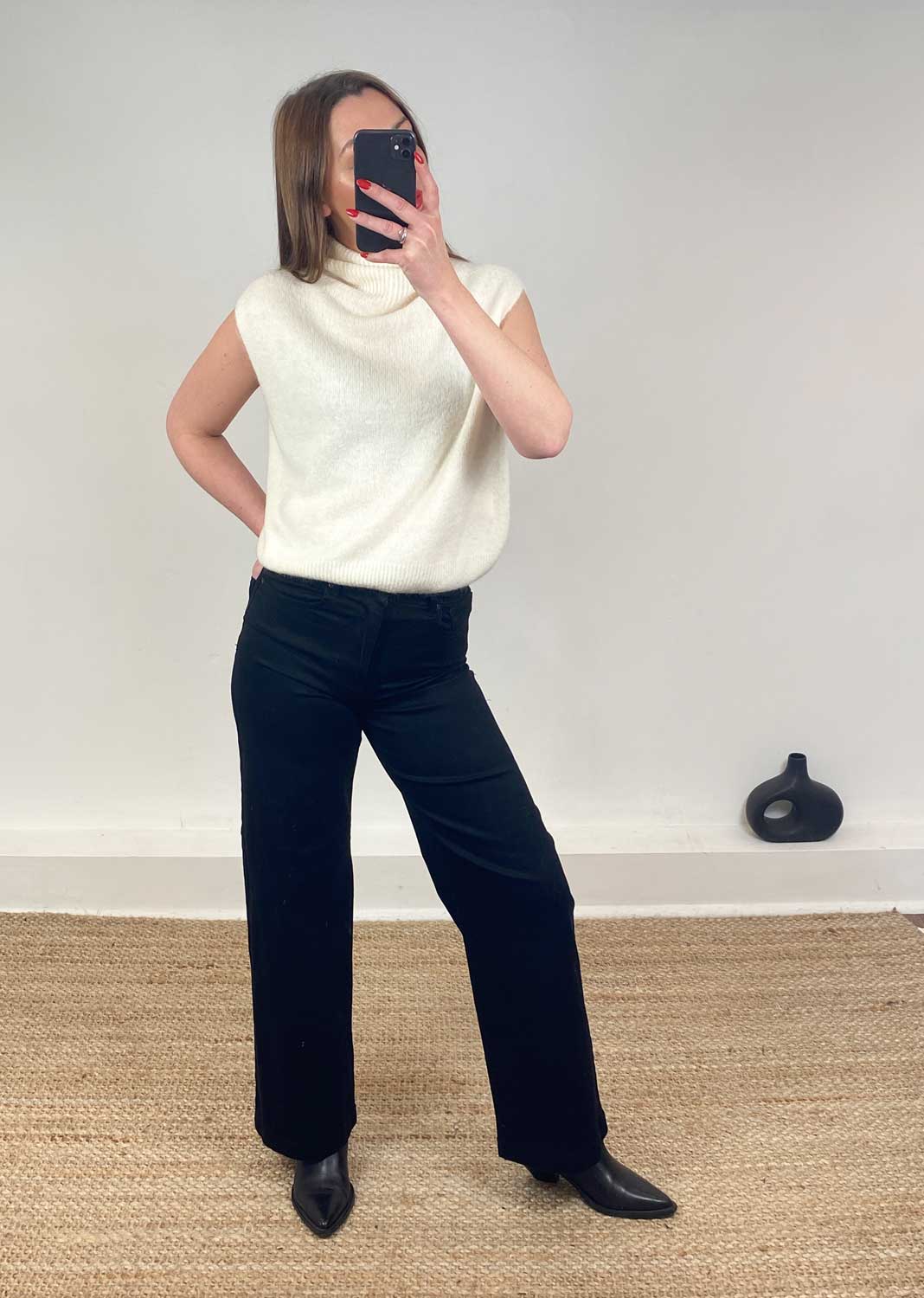 cream turtle neck tank top wool
