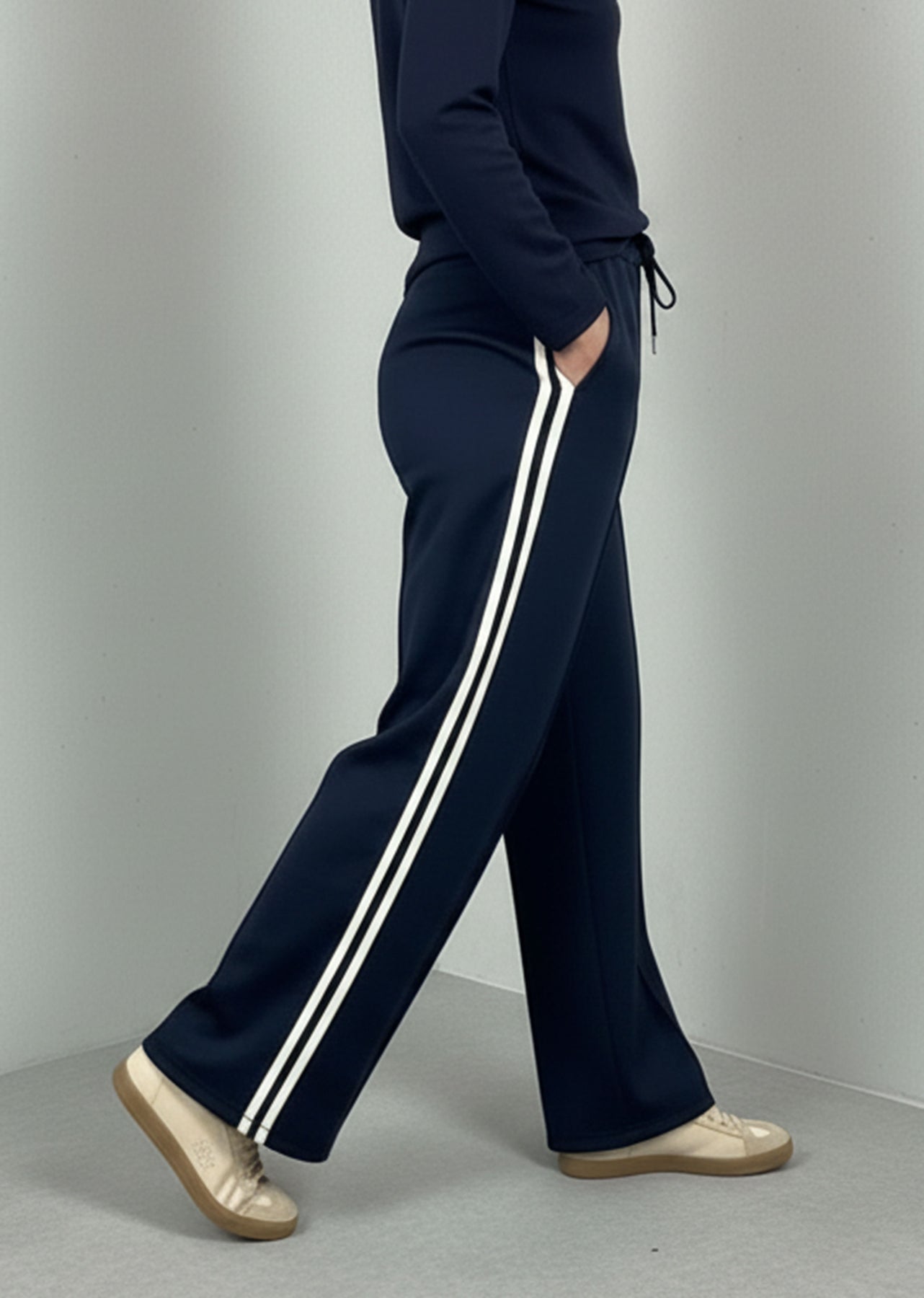 Step up your casual style with these side stripe track pants. Featuring a wide leg fit and bold side stripes, they blend comfort with a sporty edge. Easy to dress up or down, they’re perfect for off-duty days, travel, or relaxed weekends
