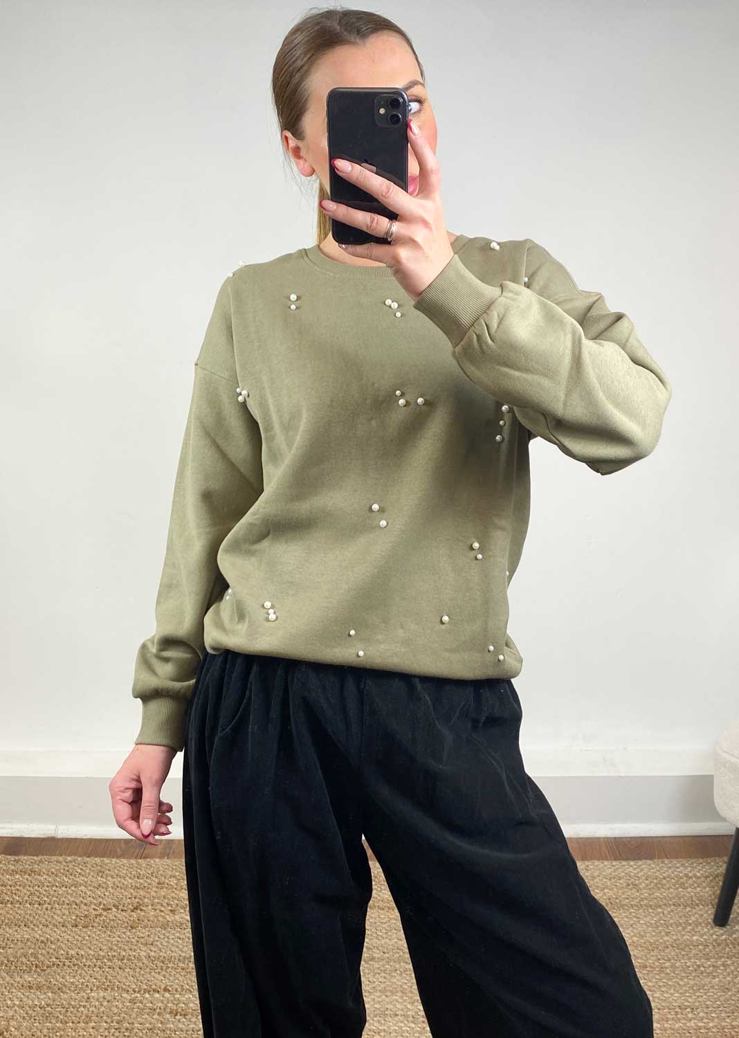 Matilda Sage Green Pearl Sweater